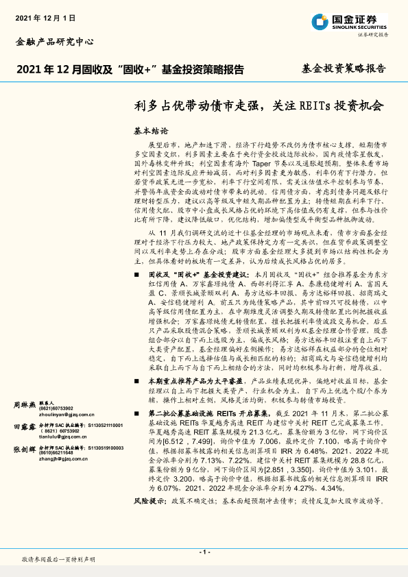 【国金证券】【20211201】2021年12月固收及“固收+”基金投资策略报告-26页