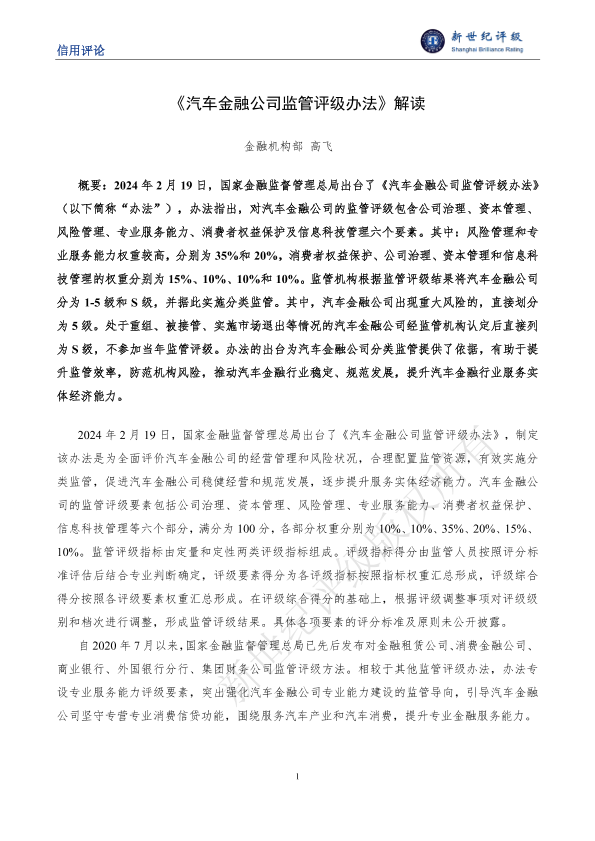 【国家金融监督管理总局】【20240219】《汽车金融公司监管评级办法》解读-6页