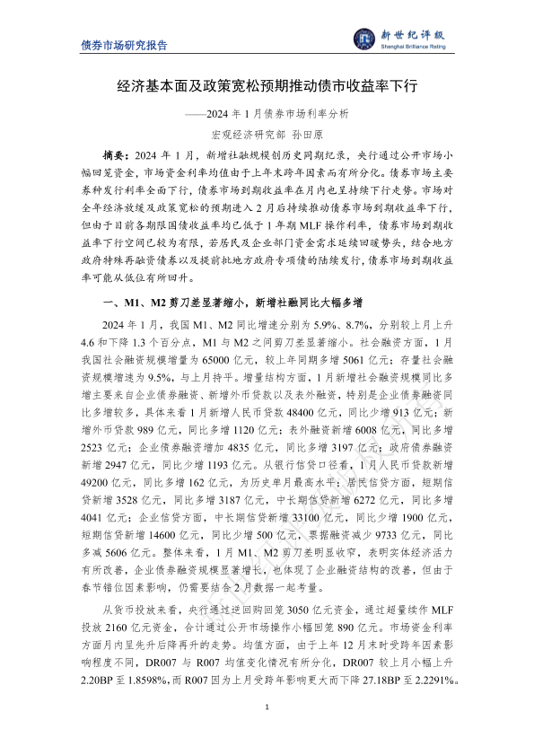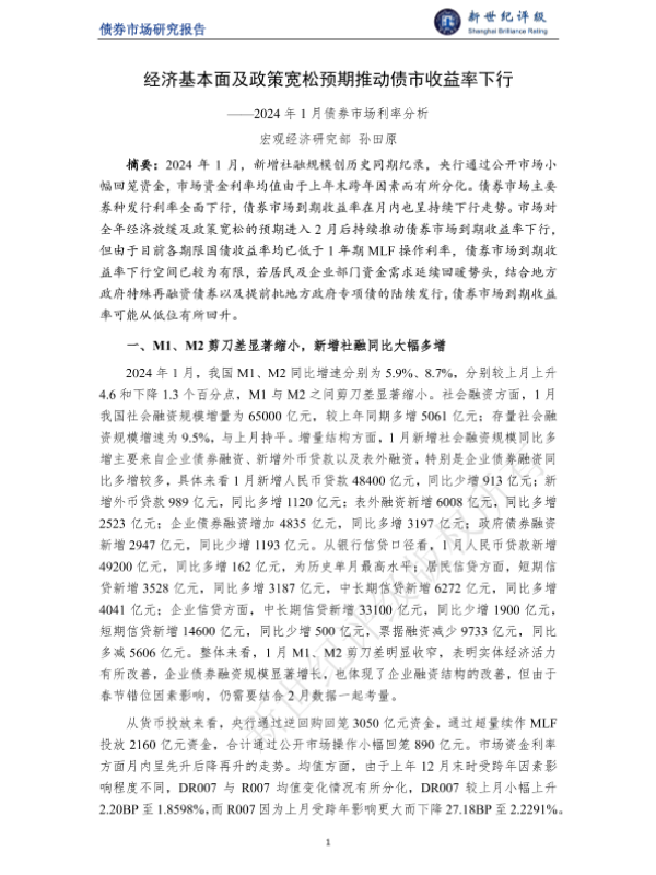【宏观经济研究部孙田原】【20240101】经济基本面及政策宽松预期推动债市收益率下行——2024年1月债券市场利率分析-5页