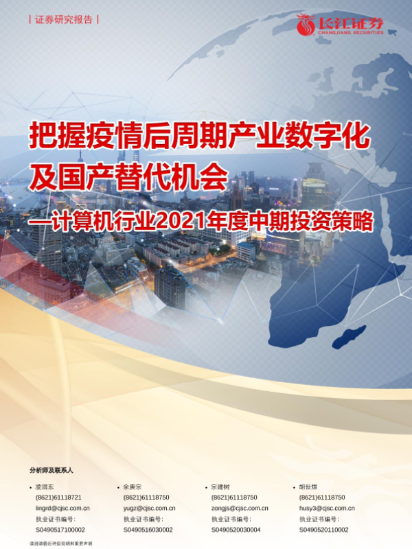 【长江证券】【20210616】计算机行业2021年度中期投资策略:把握疫情后周期产业数字化及国产替代机会-33页