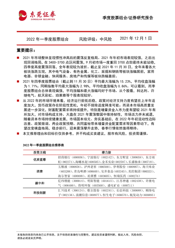 【东莞证券】【20211201】2022年一季度股票组合-34页