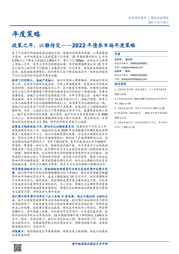 【国盛证券】【20211203】2022年债券市场年度策略:政策之年,以静待变-32页