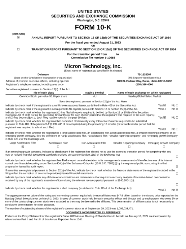 【Micron Technology】【20230831】Form 10-K for Micron Technology INC filed 10.06.23-141页