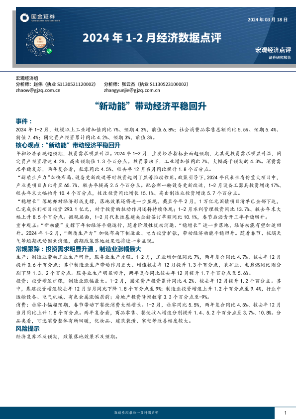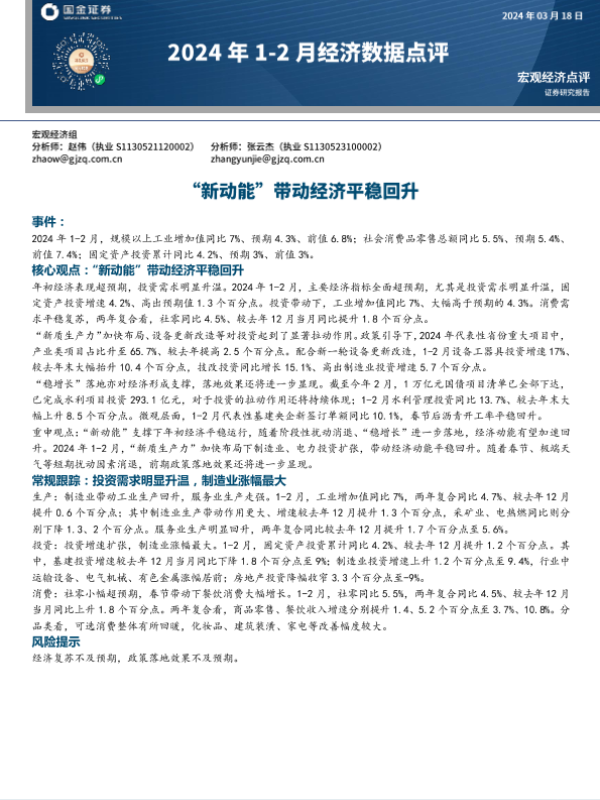 【国金证券】【20240318】2024年1-2月经济数据点评:“新动能”带动经济平稳回升-10页