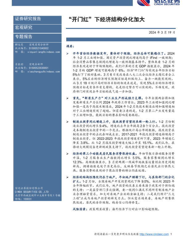 【信达证券】【20240319】“开门红”下经济结构分化加大-11页