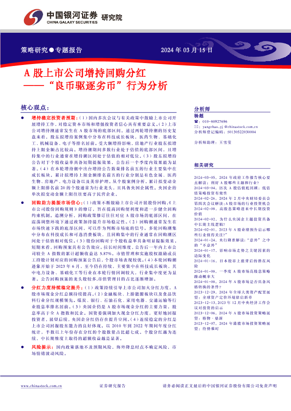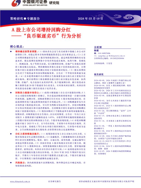 【银河证券】【20240315】“良币驱逐劣币”行为分析:A股上市公司增持回购分红-27页