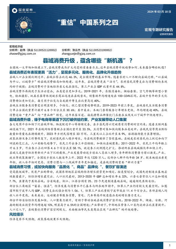 【国金证券】【20240318】“重估”中国系列之四:县域消费升级,蕴含哪些“新机遇”?-33页