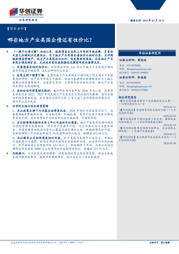 【华创证券】【20240320】【债券分析】哪些地方产业类国企债还有性价比?-12页