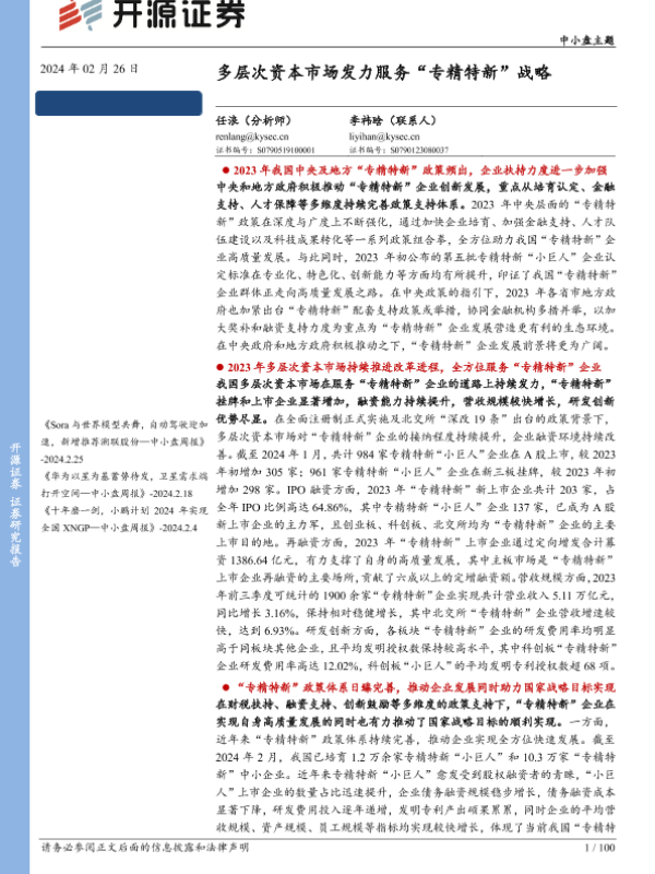 【开源证券】【20240226】中小盘主题:多层次资本市场发力服务“专精特新”战略-100页