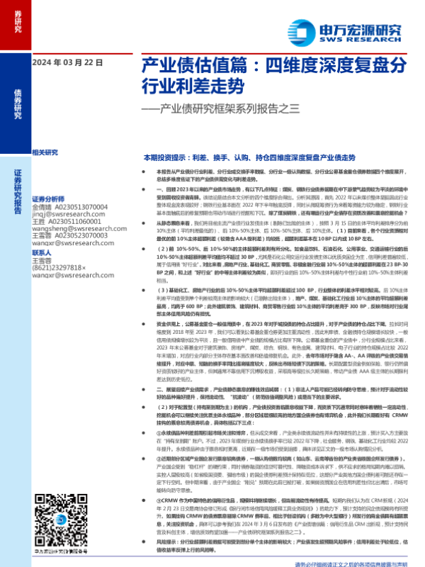【申万宏源】【20240322】产业债估值篇:四维度深度复盘分行业利差走势-24页