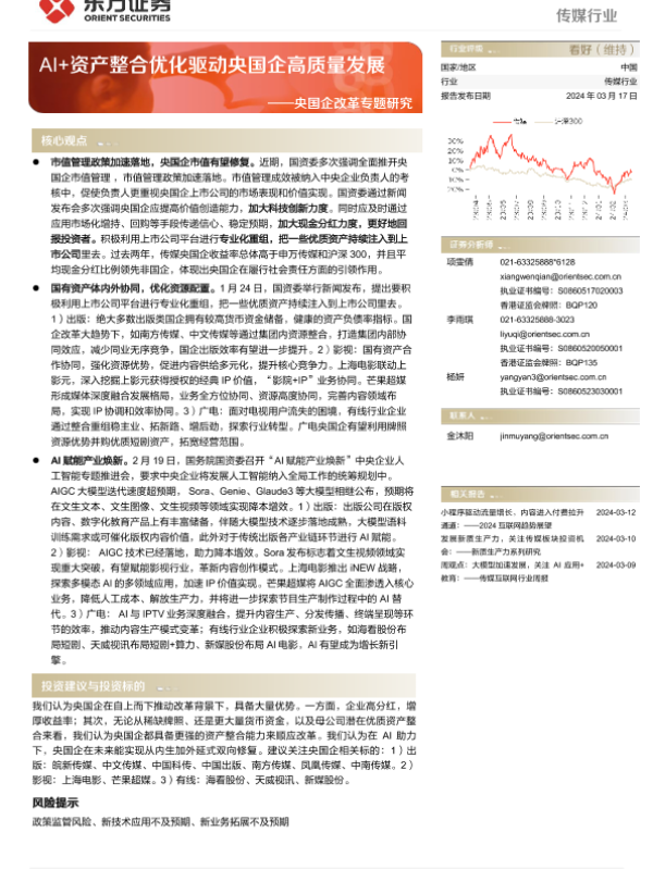【东方证券】【20240317】传媒行业央国企改革专题研究:AI+资产整合优化驱动央国企高质量发展-18页
