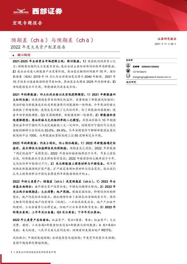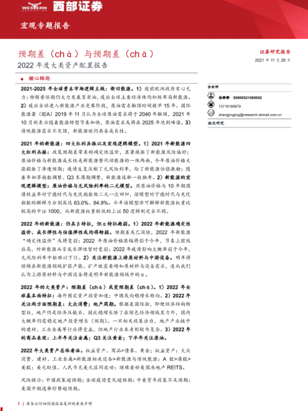 【西部证券】【20211128】2022年度大类资产配置报告:预期差(chà)与预期差(chā)-19页