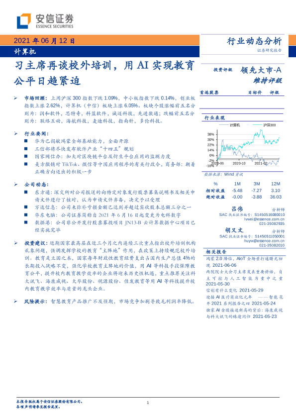 【安信证券】【20210612】计算机行业:习主席再谈校外培训,用AI实现教育公平日趋紧迫-24页