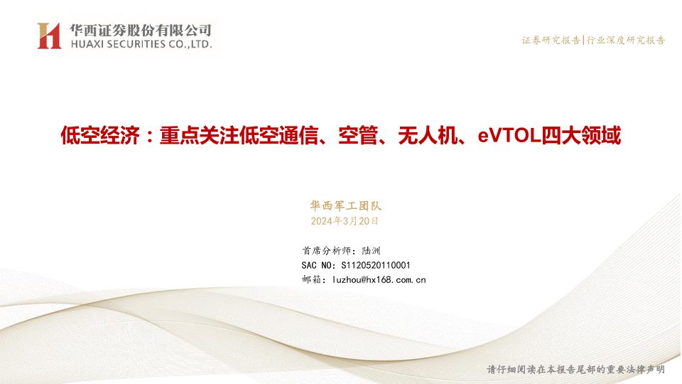 【华西证券】【20240320】军工行业低空经济:重点关注低空通信、空管、无人机、eVTOL四大领域-25页