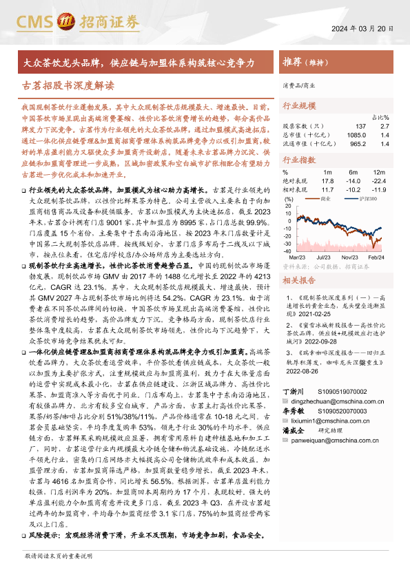 【海通证券】【20240320】商业行业古茗招股书深度解读:大众茶饮龙头品牌,供应链与加盟体系构筑核心竞争力-29页