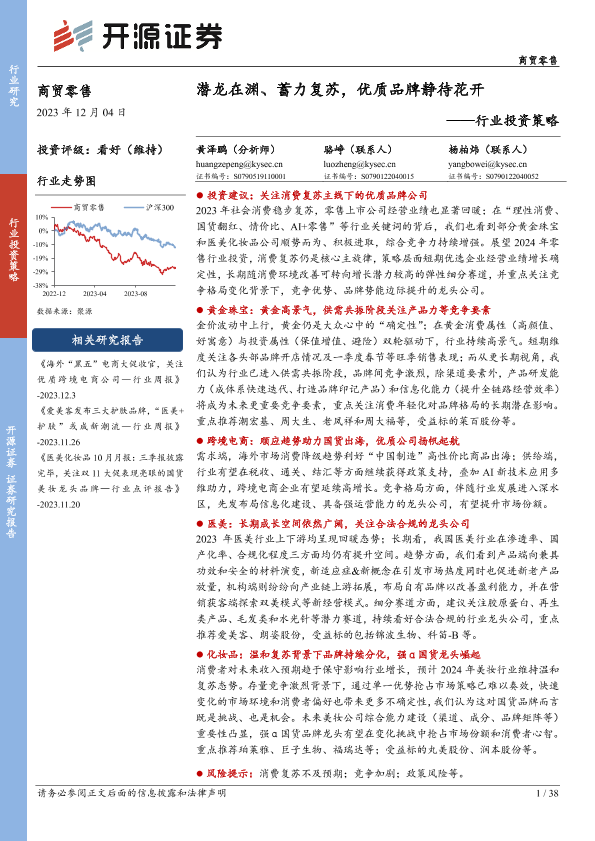 【开源证券】【20231204】商贸零售行业投资策略:潜龙在渊、蓄力复苏,优质品牌静待花开-38页