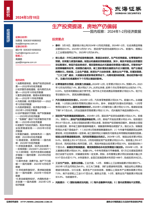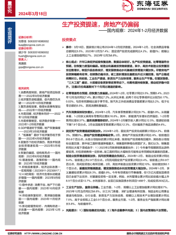 【东海证券】【20240318】生产投资提速,房地产仍偏弱——国内观察:2024年1-2月经济数据-14页