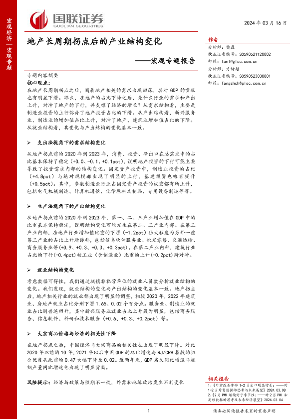 【国联证券】【20240316】宏观专题报告:地产长周期拐点后的产业结构变化-16页