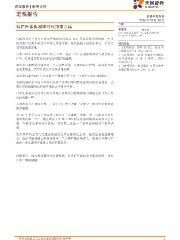 【天风证券】【20240320】宏观点评:写在日本负利率时代结束之际-10页