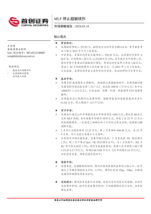 【首创证券】【20240318】市场策略报告:MLF停止超额续作-11页