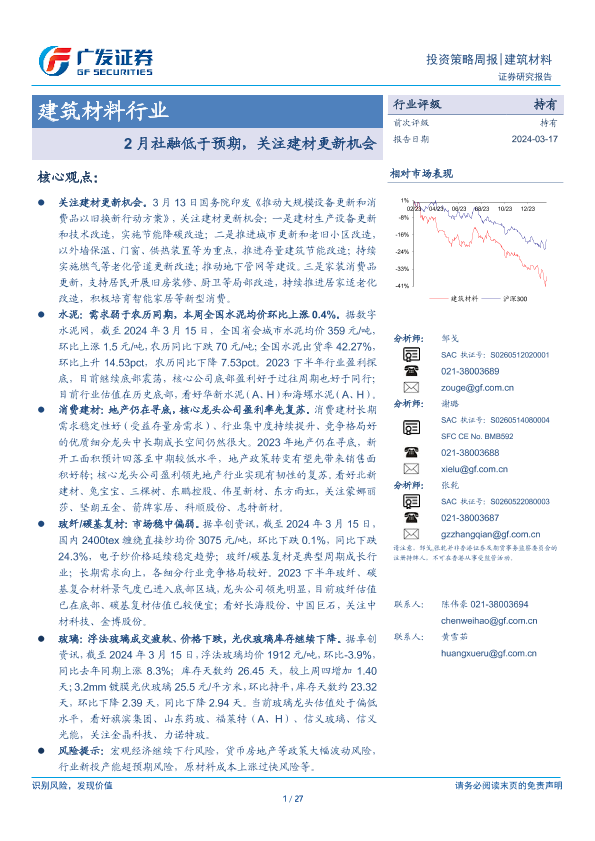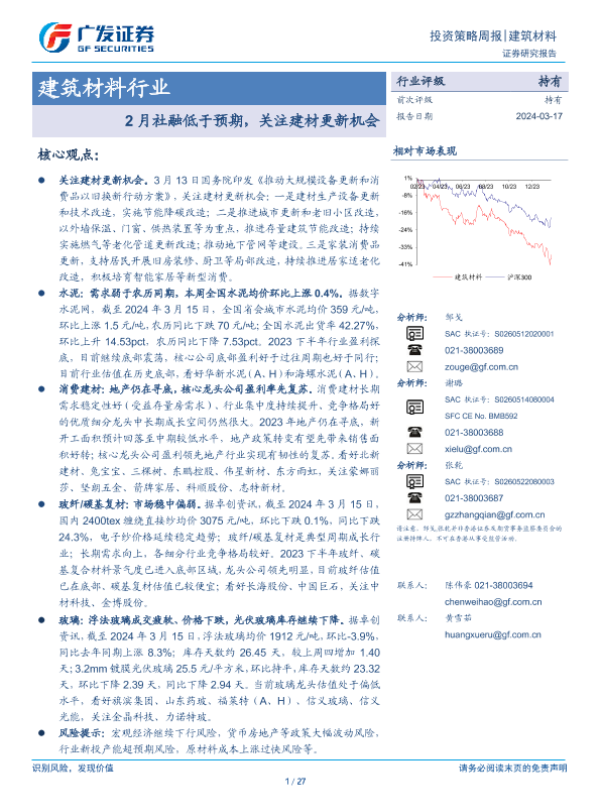 【广发证券】【20240317】建筑材料行业:2月社融低于预期,关注建材更新机会-25页