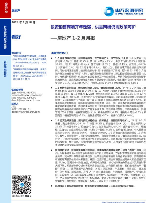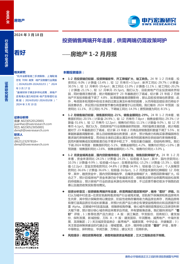 【申万宏源】【20240318】房地产行业1-2月月报:投资销售两端开年走弱,供需两端仍需政策呵护-10页