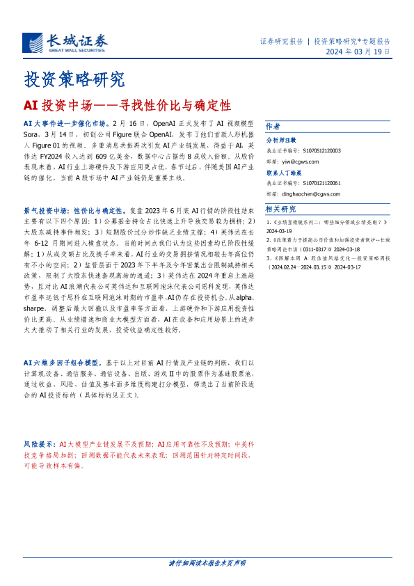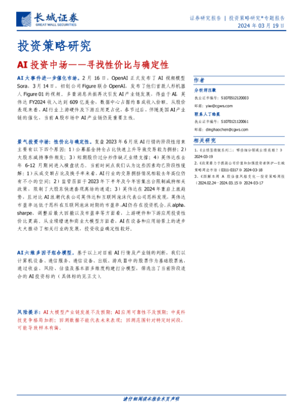 【长城证券】【20240319】投资策略研究:AI投资中场,寻找性价比与确定性-17页