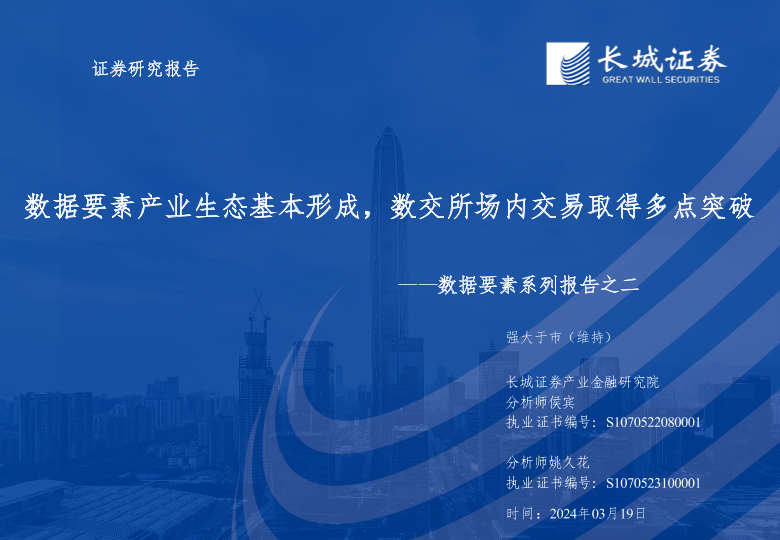【长城证券】【20240319】数据要素行业系列报告之二:数据要素产业生态基本形成,数交所场内交易取得多点突破-32页