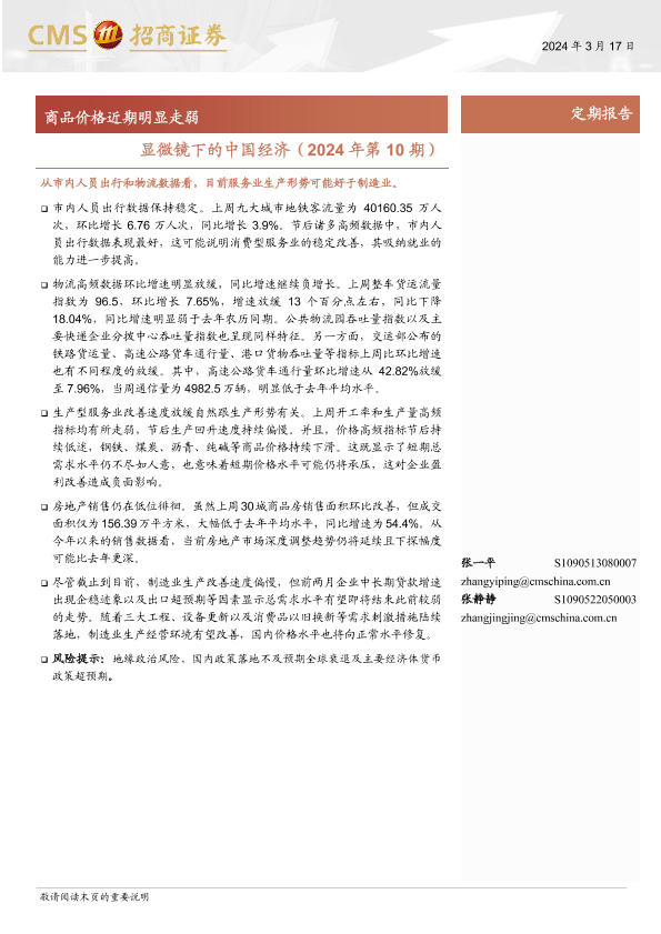 【海通证券】【20240317】显微镜下的中国经济(2024年第10期):商品价格近期明显走弱-38页