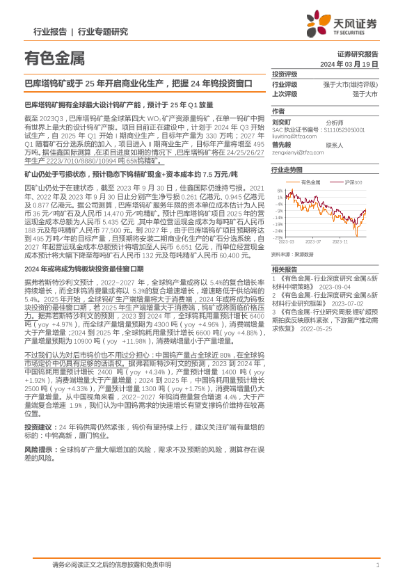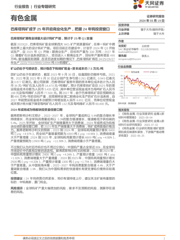 【天风证券】【20240319】有色金属行业报告:巴库塔钨矿或于25年开启商业化生产,把握24年钨投资窗口-8页