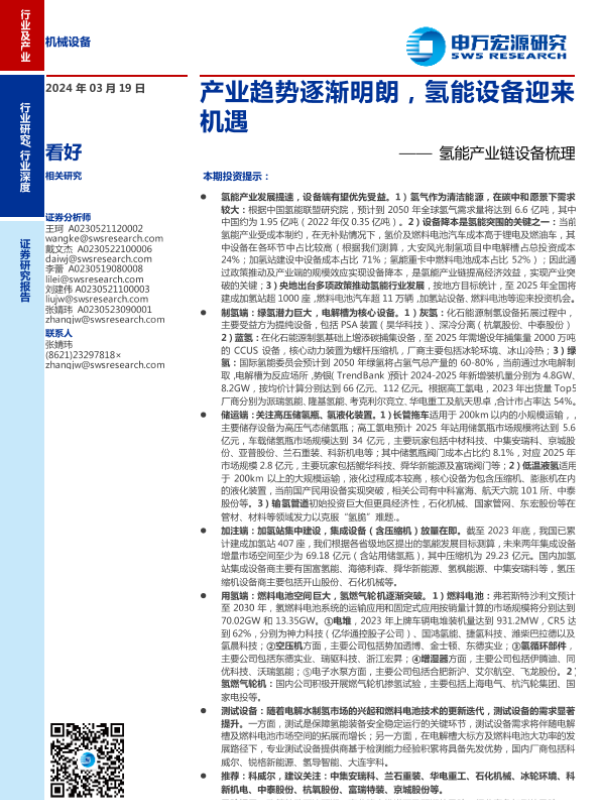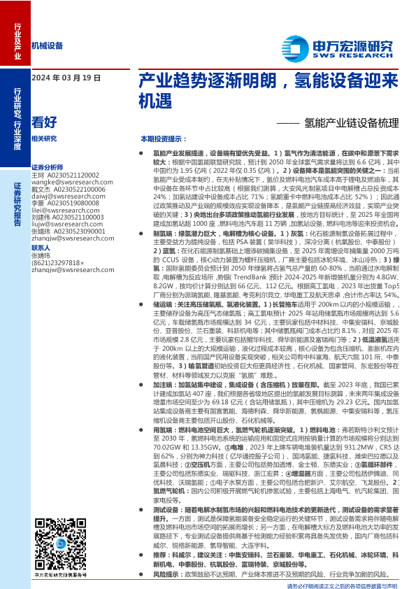 【申万宏源】【20240319】机械设备行业氢能产业链设备梳理:产业趋势逐渐明朗,氢能设备迎来机遇-74页