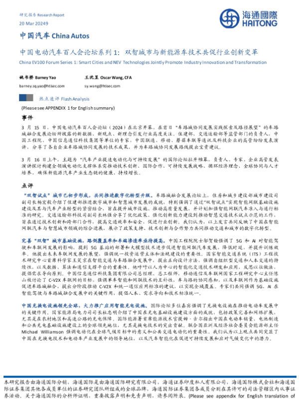 【海通国际】【20240320】中国电动汽车百人会论坛系列1:双智城市与新能源车技术共促行业创新变革-15页