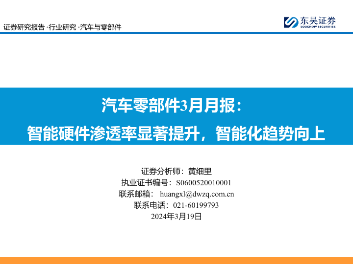 【东吴证券】【20240319】汽车零部件3月月报:智能硬件渗透率显著提升,智能化趋势向上-31页