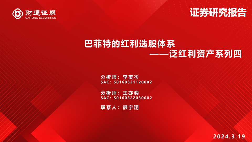 【财通证券】【20240319】泛红利资产系列四:巴菲特的红利选股体系-29页