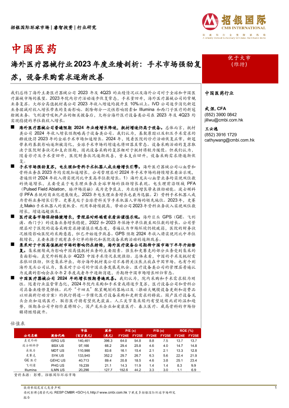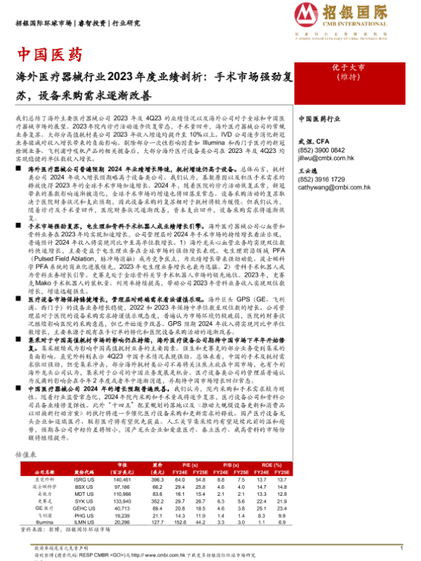 【招银国际】【20240318】海外医疗器械行业2023年度业绩剖析:手术市场强劲复苏,设备采购需求逐渐改善-67页