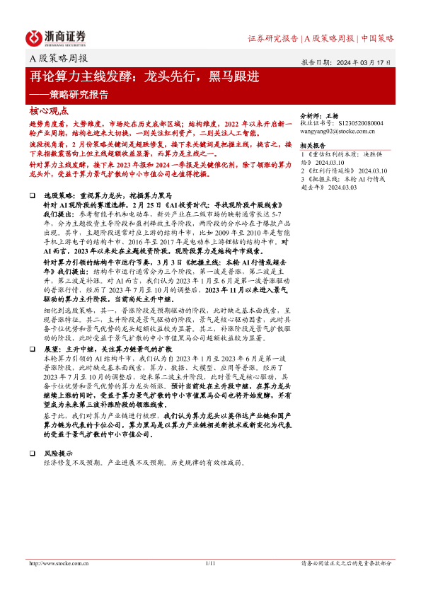 【浙商证券】【20240317】策略研究报告-再论算力主线发酵:龙头先行,黑马跟进-11页