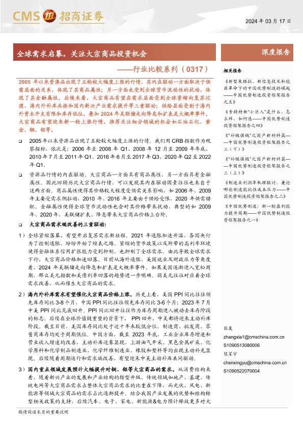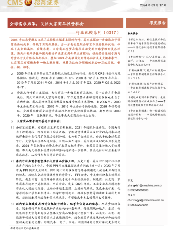 【海通证券】【20240317】行业比较系列:全球需求启幕,关注大宗商品投资机会-28页