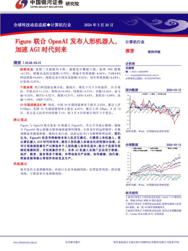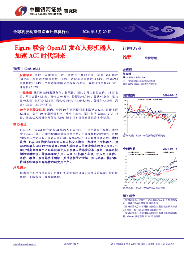 【银河证券】【20240320】计算机行业全球科技动态追踪:Figure联合OpenAI发布人形机器人,加速AGI时代到来-10页