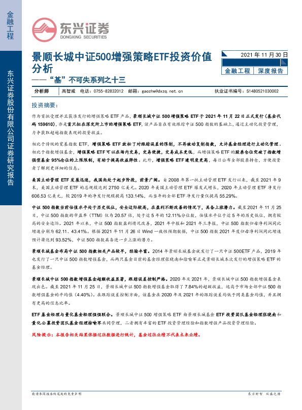 【东兴证券】【20211130】“基”不可失系列之十三:景顺长城中证500增强策略ETF投资价值分析-17页