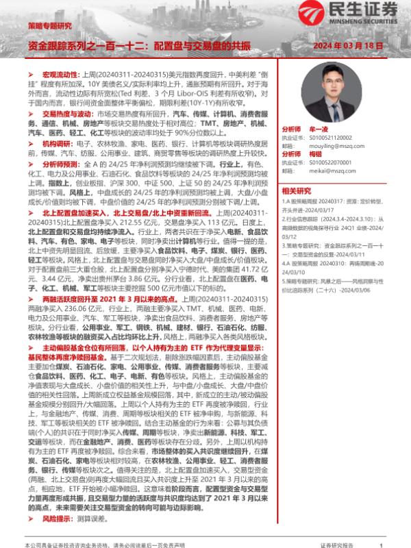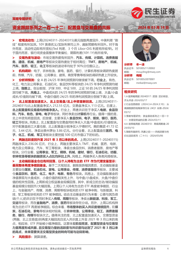 【民生证券】【20240318】资金跟踪系列之一百一十二:配置盘与交易盘的共振-35页