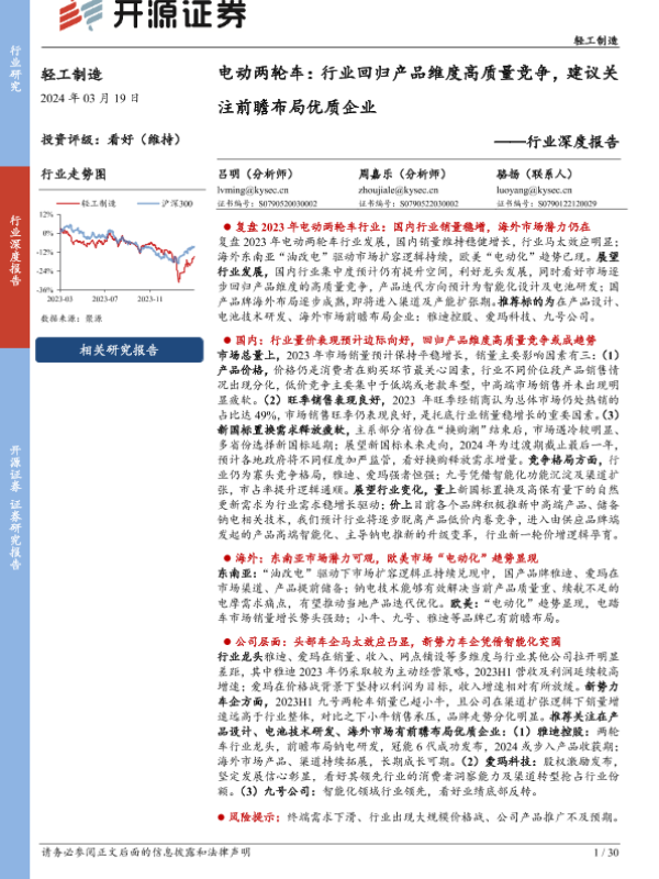 【开源证券】【20240319】轻工制造行业深度报告-电动两轮车:行业回归产品维度高质量竞争,建议关注前瞻布局优质企业-28页