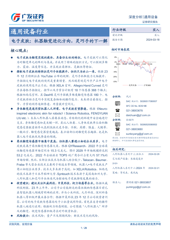 【广发证券】【20240318】通用设备行业:电子皮肤,机器触觉进化方向,灵巧手的下一解-26页