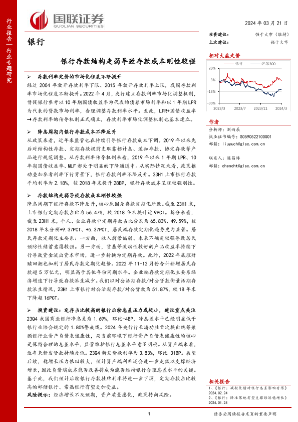 【国联证券】【20240321】银行业专题研究:银行存款结构走弱导致存款成本刚性较强-16页