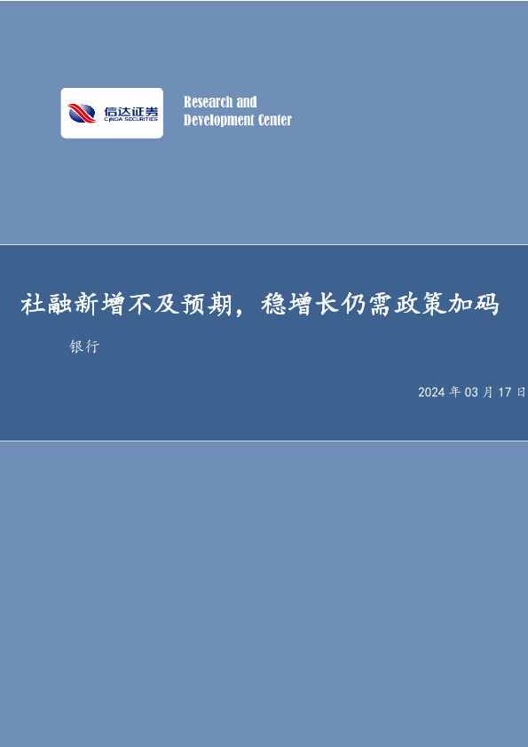【信达证券】【20240317】社融新增不及预期,稳增长仍需政策加码-11页
