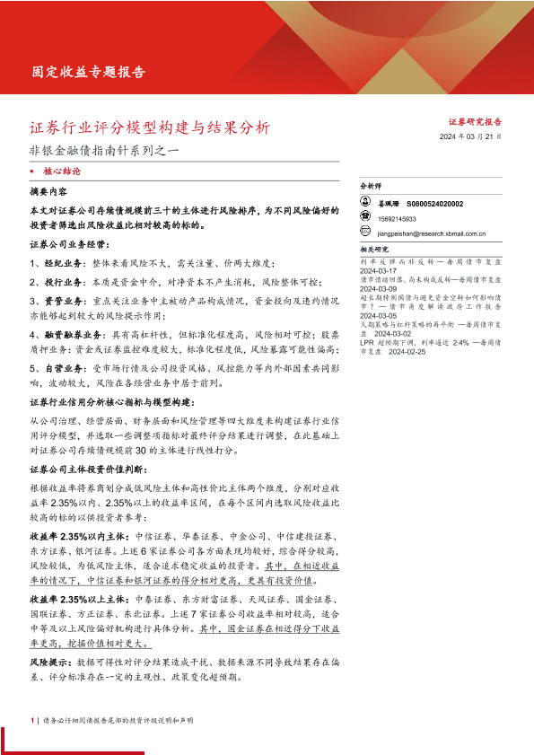 【西部证券】【20240321】非银金融债指南针系列之一:证券行业评分模型构建与结果分析-32页