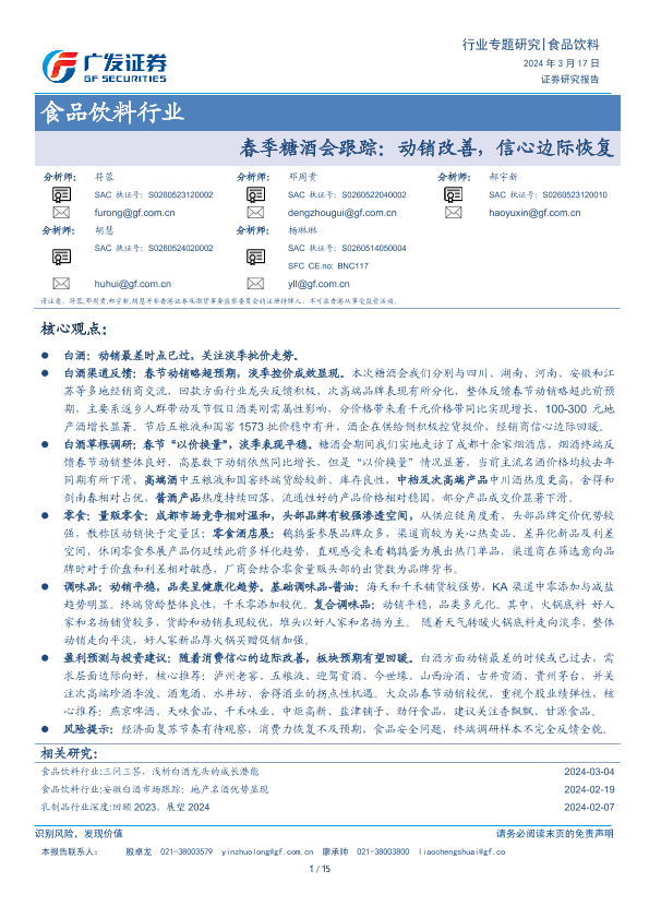 【广发证券】【20240317】食品饮料行业春季糖酒会跟踪:动销改善,信心边际恢复-13页
