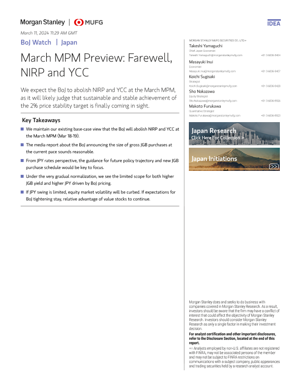 【Morgan Stanley】【202403】Morgan Stanley Fixed-BoJ Watch March MPM Preview Farewell, NIRP and YCC-15页