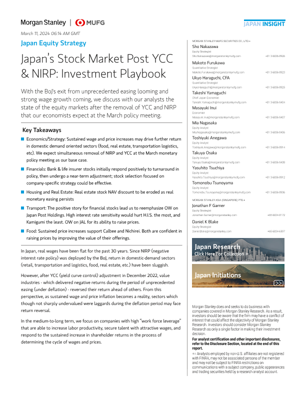 【Morgan Stanley】【20240228】Japan’s Stock Market Post YCC & NIRP Investment Playbook-41页
