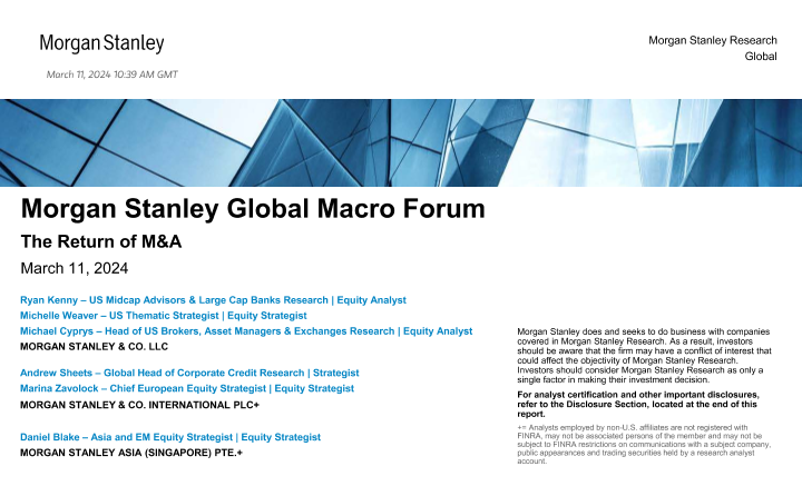 【Morgan Stanley】【20240311】Morgan Stanley Global Macro Forum The Return of M&A-27页