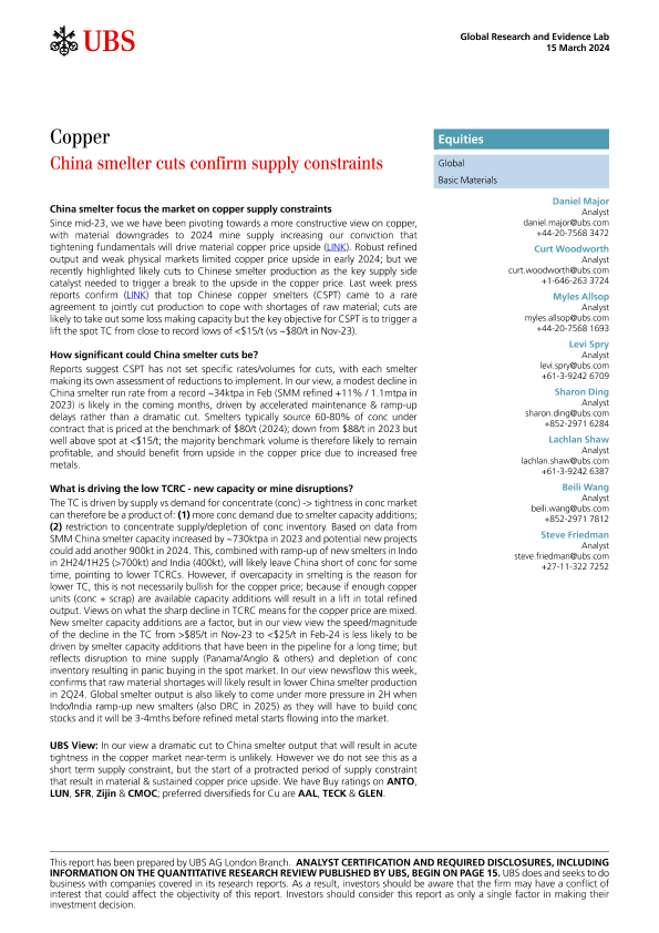 【UBS AG London Branch】【20240315】UBS Equities-Copper _China smelter cuts confirm supply constraints_-24页